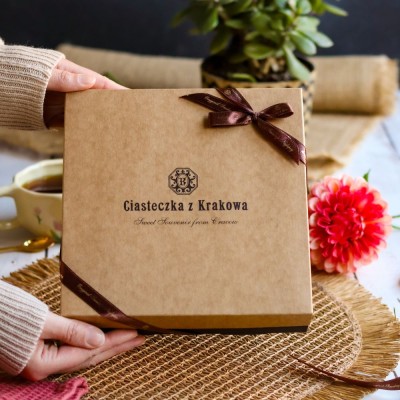 Bombonierka ciasteczka kruche to wyjątkowa kolekcja kruchych ciasteczek w różnych kształtach, udekorowanych migdałami, pestkami dyni, orzeszkami arachidowymi i wiórkami kokosowymi. Każde ciasteczko zachwyca maślanym aromatem i delikatną kruchością. Całość zapakowana w elegancki kartonik, przewiązany wstążką – idealna na prezent lub specjalną okazję!