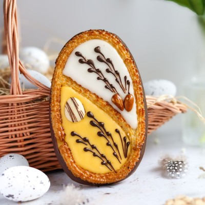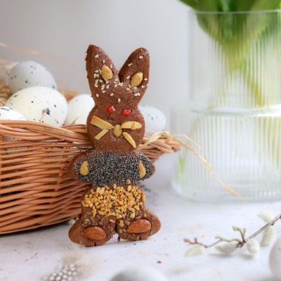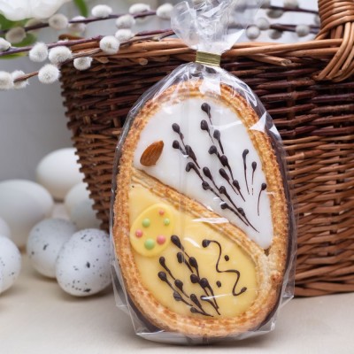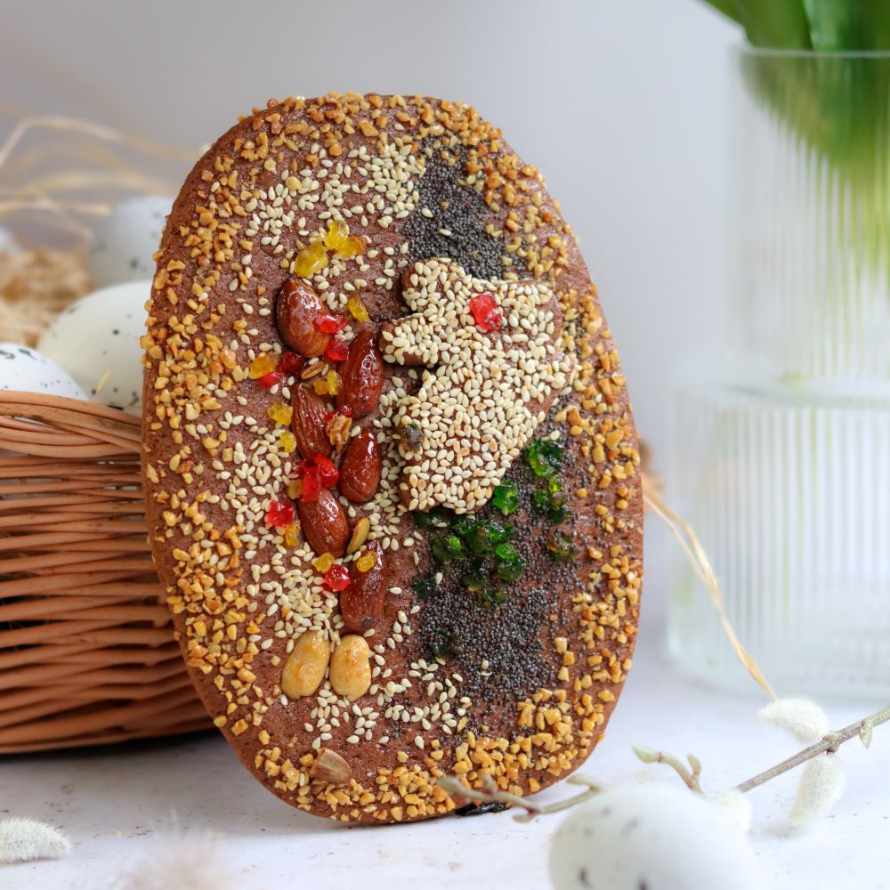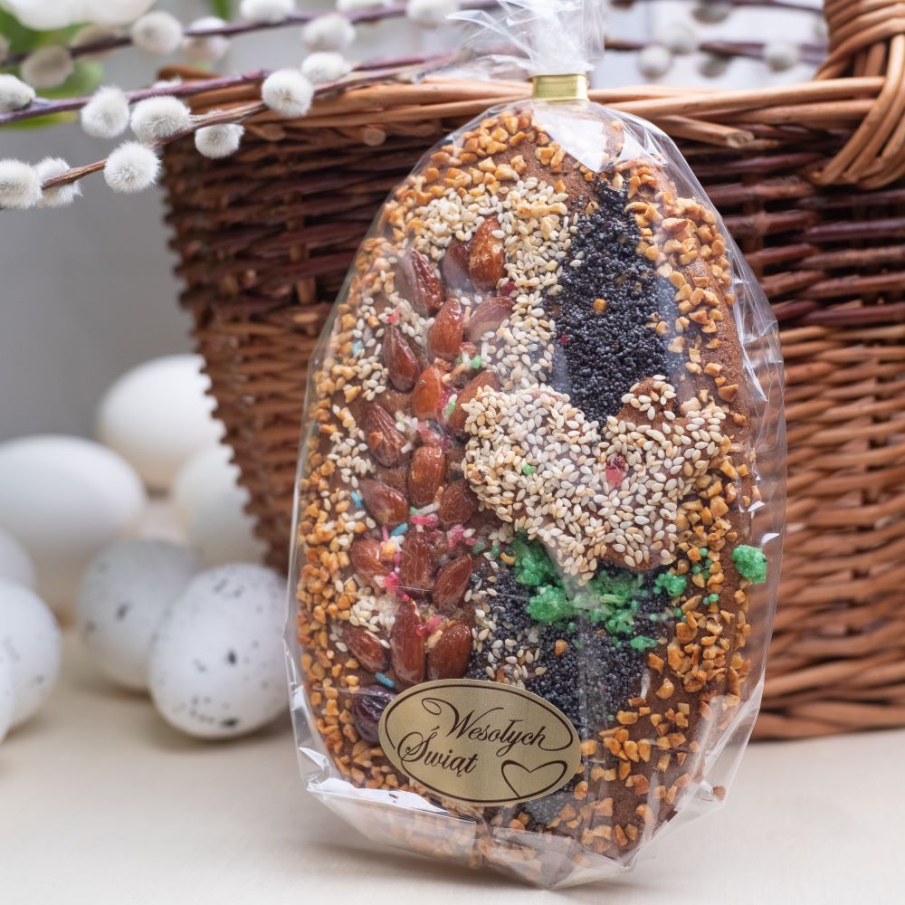 Wyjątkowe wielkanocne jajko z aromatycznego ciasta piernikowego! Delikatnie korzenne, lekko chrupiące i misternie udekorowane bakaliami. Idealne jako świąteczna ozdoba, elegancki upominek lub słodka przyjemność na wielkanocny stół.