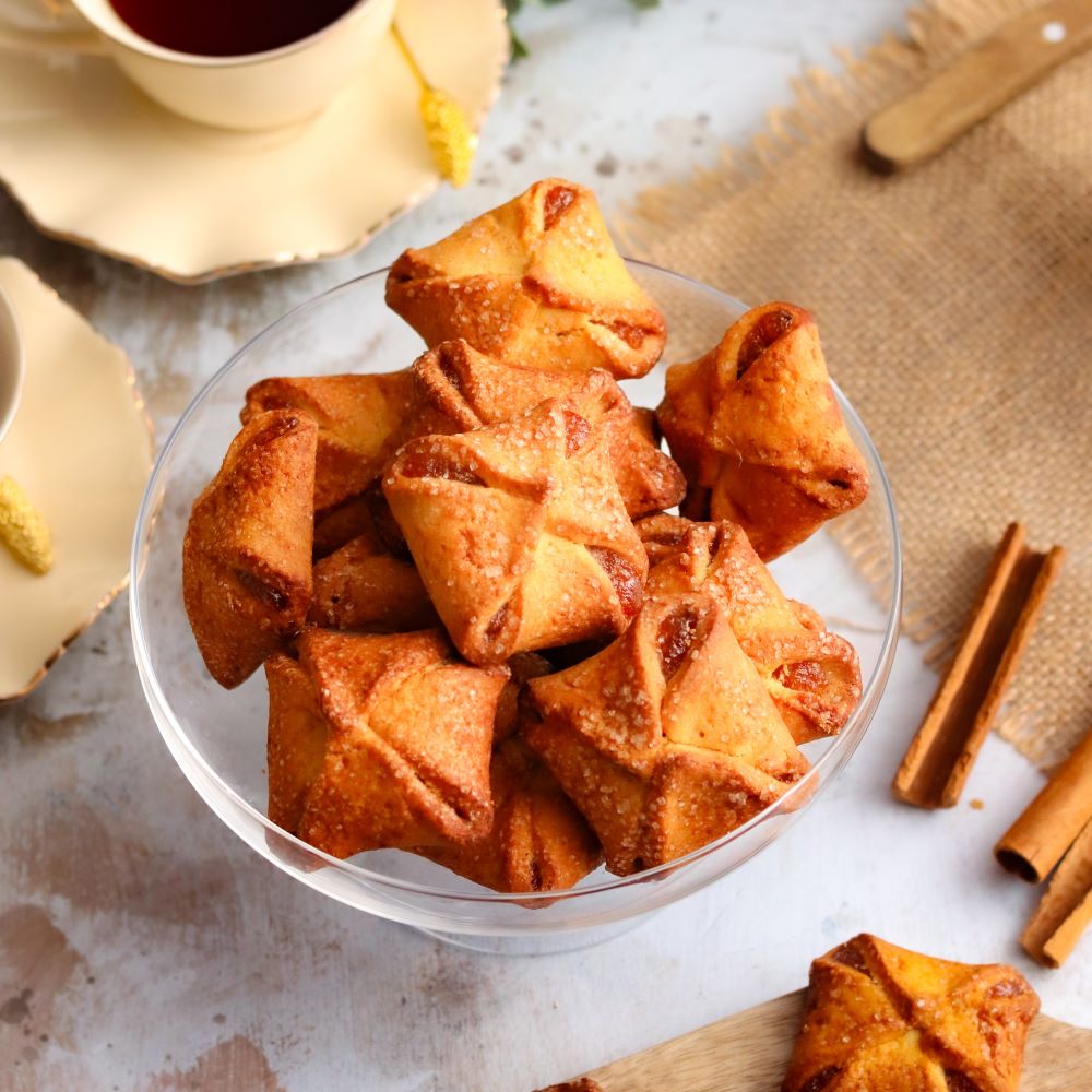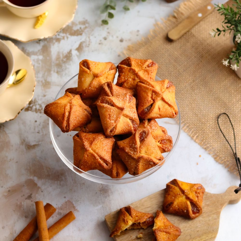 Kruche ciasteczka w kształcie „koperty” z nadzieniem o smaku jabłkowym to połączenie delikatnej kruchości i subtelnej owocowej słodyczy. Każde ciastko ma przyjemną teksturę i wyraźną nutę jabłka, która harmonizuje z lekką strukturą wypieku. Ręcznie robione, idealne jako ciasteczka na prezent lub ciastka prezentowe, sprawdzą się także jako słodka przekąska do kawy czy herbaty. To klasyczna propozycja, gdy szukasz uniwersalnego, smakowitego upominku — od prostych chwil przyjemności po eleganckie prezenty.