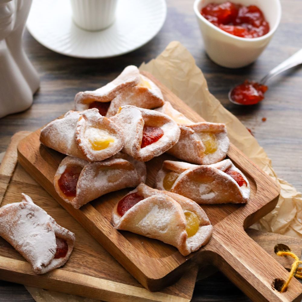 Ręcznie robione kruche ciasteczka wypełnione aksamitnym kremem o smaku wiśniowo-adwokatowym. Maślane ciasto idealnie komponuje się z owocową nutą wiśni i delikatną kremowością adwokata, tworząc deserową słodkość, która świetnie sprawdzi się do kawy lub herbaty. To klasyczne ciastka z nadzieniem, przygotowywane ręcznie, z dbałością o smak i wygląd. Doskonałe jako słodka przekąska na co dzień, na rodzinne spotkania lub jako ciastka na prezent.