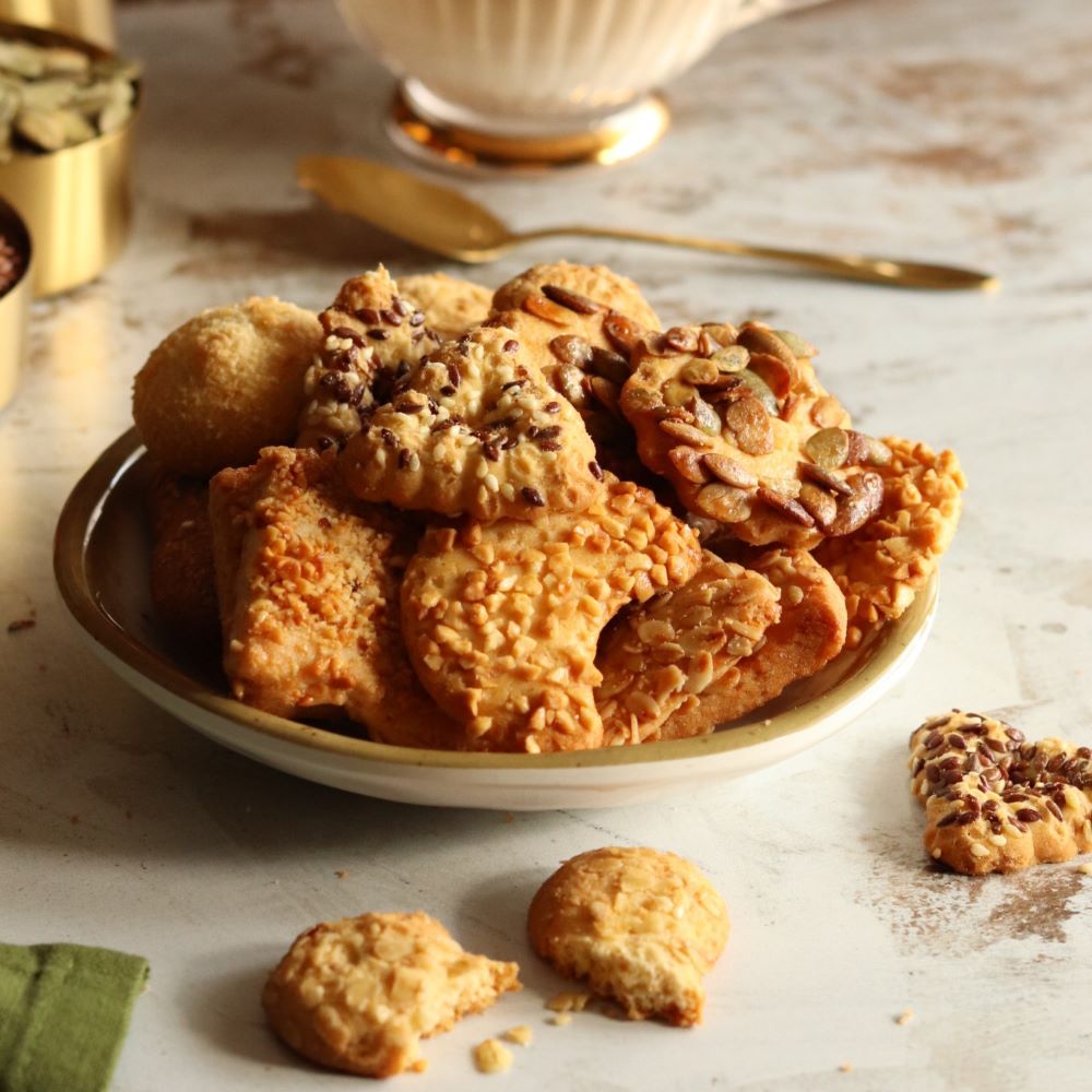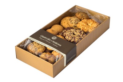 Różnorodna mieszanka ręcznie robionych ciastek o delikatnej kruchości i subtelnej chrupkości. W skład zestawu wchodzą wypieki wzbogacone pestkami dyni, orzeszkami arachidowymi, płatkami owsianymi i kukurydzianymi, które tworzą ciekawą teksturę i wyjątkowy smak. Te ciasteczka to nie tylko smaczna przekąska do kawy i herbaty, ale także świetny wybór jako ciasteczka na prezent lub ciastka prezentowe dla bliskich. Uniwersalne i atrakcyjne wizualnie, idealnie sprawdzają się jako drobny upominek lub smakowita niespodzianka na spotkania rodzinne i okazjonalne.
