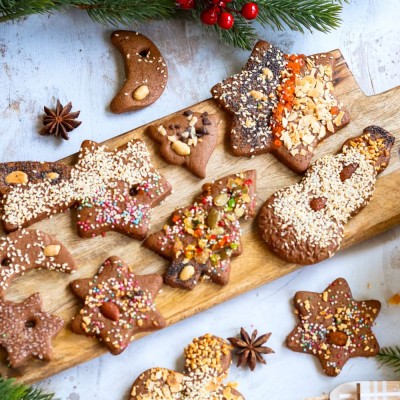 Pierniczki z bakaliami to idealne połączenie tradycyjnego, korzennego smaku z bogactwem dodatków. Ozdobione różnorodnymi bakaliami, takimi jak migdały, orzechy, kandyzowane owoce i kolorowe posypki, nadają każdemu kawałkowi wyjątkowego charakteru. Pełne aromatu cynamonu, goździków i imbiru, pierniczki te doskonale sprawdzą się jako słodki upominek na święta lub pyszna dekoracja świątecznego stołu. Każdy piernik to małe, ręcznie robione arcydzieło, które przyciąga uwagę zarówno wyglądem, jak i smakiem.