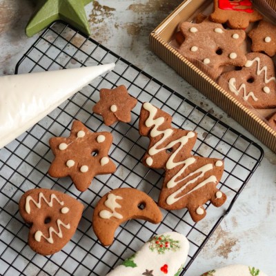 Składniki: mąka pszenna, tłuszcz roślinny (palmowy, rzepakowy), cukier, syrop cukrowy inwertowany, masa jajowa pasteryzowana, przyprawa do piernika, kakao w proszku, syrop glukozowy, soda oczyszczona. Może zawierać orzeszki arachidowe, inne orzechy, mleko, sezam oraz soję.