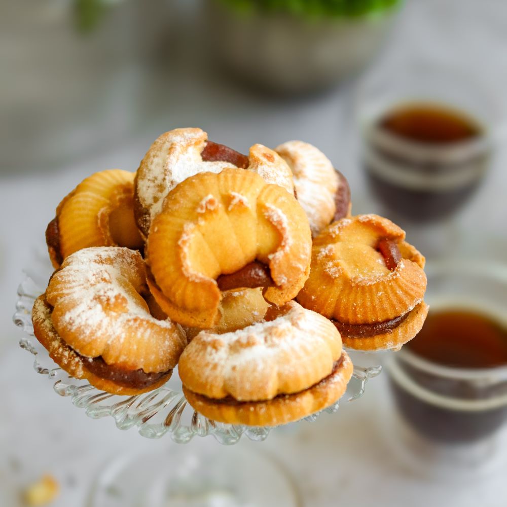Delikatne, kruche rogaliki wypełnione aromatyczną marmoladą różaną, która nadaje im wyjątkowego, lekko kwiatowego charakteru. Ich maślana kruchość i subtelna słodycz sprawiają, że trudno poprzestać na jednym. Idealne do filiżanki herbaty i chwil, które chce się celebrować.