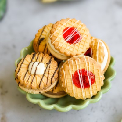 Pienione ciasteczka połączone marmoladą o samku czarnej porzeczki – o wyrazistym, lekko kwaskowym smaku, który przyjemnie kontrastuje z ich subtelną słodyczą. Całość oprószona cukrem pudrem, przywodzi na myśl domowe wypieki z dzieciństwa. Idealne na chwilę słodkiej nostalgii.