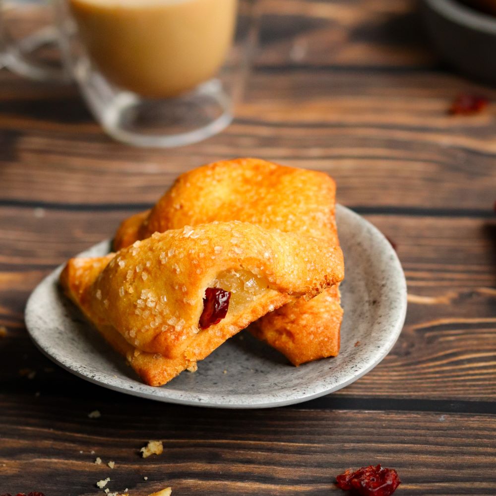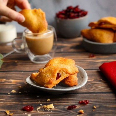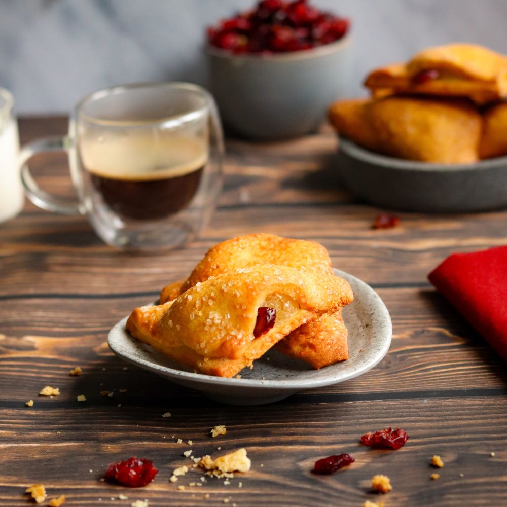 Trójkąt waniliowy z żurawiną to kruche ciasteczka wypełnione aksamitnym kremem waniliowym i żurawiną. Wyjątkowe połączenie słodkiego kremu i delikatnie kwaskowatej żurawiny tworzy niepowtarzalną kompozycję smaków. Doskonałe na spotkania z bliskimi, rodzinne chwile lub jako słodka niespodzianka. Odkryj ich wyjątkowy smak.