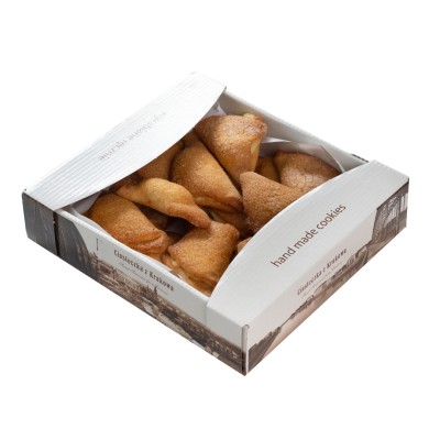 Trójkąt waniliowy z żurawiną to kruche ciasteczka wypełnione aksamitnym kremem waniliowym i żurawiną. Wyjątkowe połączenie słodkiego kremu i delikatnie kwaskowatej żurawiny tworzy niepowtarzalną kompozycję smaków. Doskonałe na spotkania z bliskimi, rodzinne chwile lub jako słodka niespodzianka. Odkryj ich wyjątkowy smak!
